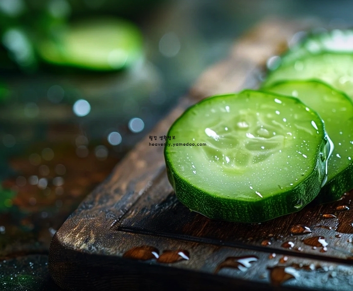 오이에 포함된 베타카로틴은 눈 건강에 중요한 영양소입니다. 특히 눈의 피로를 줄이고 안구 건조증을 완화하는 데 효과적입니다. 오이 슬라이스를 눈 위에 얹으면 붓기를 가라앉히고 피로를 해소할 수 있습니다.