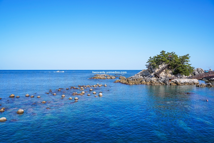 바다를 배경으로 사진을 찍으면 어디서든 멋진 장면이 연출됩니다. 인파가 많지 않아 혼자 또는 가족과 함께 한적한 시간을 보내기에 좋습니다. 근처에는 작은 포구와 카페들이 있어 잠시 쉬어가며 바다를 감상하기에도 좋습니다.