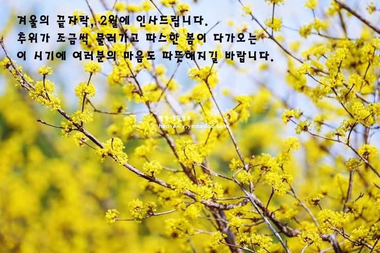 11. 서늘한 바람 속에서도 꽃피는 봄은 반드시 찾아옵니다. 2월은 그 희망을 품고 기다리는 시기죠. 다른 어느 때보다 소중한 이들과 함께 따스한 순간을 만들어가는 한 달 되시길 바랍니다.