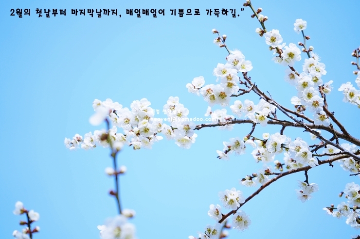4. 2월은 겨울의 끝자락에서 봄을 기다리는 시기입니다. 시간은 언제나 빠르게 흘러가지만, 그 안에서 소소한 행복을 찾는 마음이 중요하죠. 이달도 감사한 마음으로 보내며, 새로운 시작을 위해 에너지를 충전하는 시간이 되시길 바랍니다.