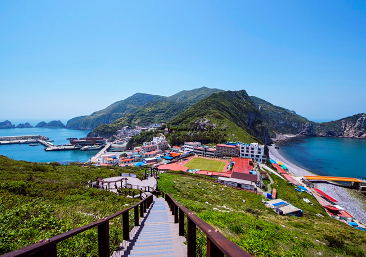 섬을 따라 조성된 산책로를 걸으면 바닷바람을 맞으며 한적한 분위기 속에서 여유로운 시간을 보낼 수 있습니다. 주민들도 보라색 옷을 입고 생활하며, 작은 가게와 카페에서도 보라색 테마를 유지하고 있어 더욱 이색적인 느낌을 줍니다.
