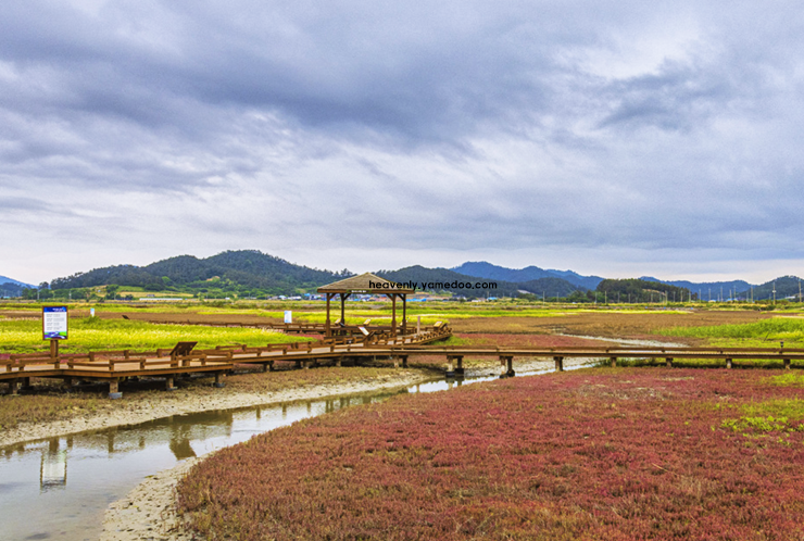 염전 한편에는 염생식물들이 자라나는 풍경이 이어지며, 붉은 칠면초가 물든 가을에는 더욱 아름다운 장면을 만들어냅니다. 날씨가 맑은 날이면 하늘과 염전이 맞닿아 마치 거울처럼 반사되는 모습이 장관을 이룹니다.