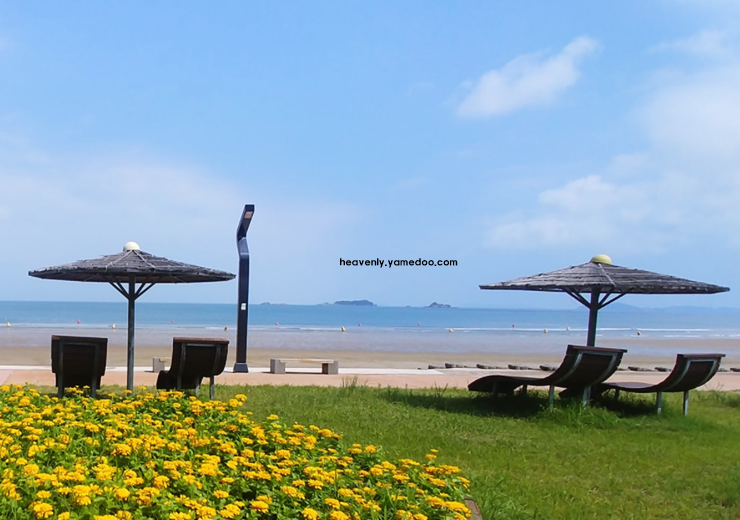 해수욕장 근처에는 숙박시설도 마련되어 있어 하루 머물며 조용한 밤바다를 감상할 수도 있습니다. 바다를 배경으로 사진을 남기기에 좋은 포토존이 곳곳에 마련되어 있습니다.
