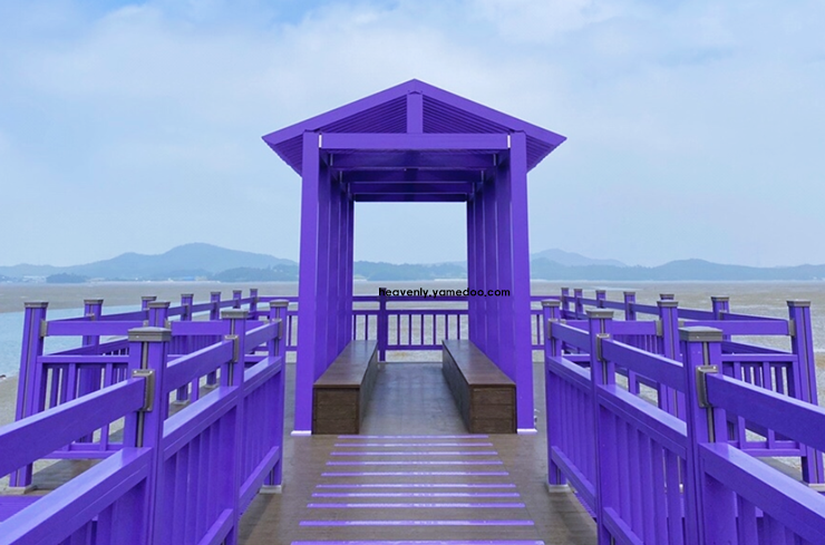 섬 안에는 보라색 테마의 카페와 음식점이 있어 간단한 식사를 하거나 차를 마시며 여유를 즐길 수 있습니다. 해 질 무렵이면 노을과 어우러진 보라색 풍경이 더욱 몽환적인 분위기를 만들어 줍니다.