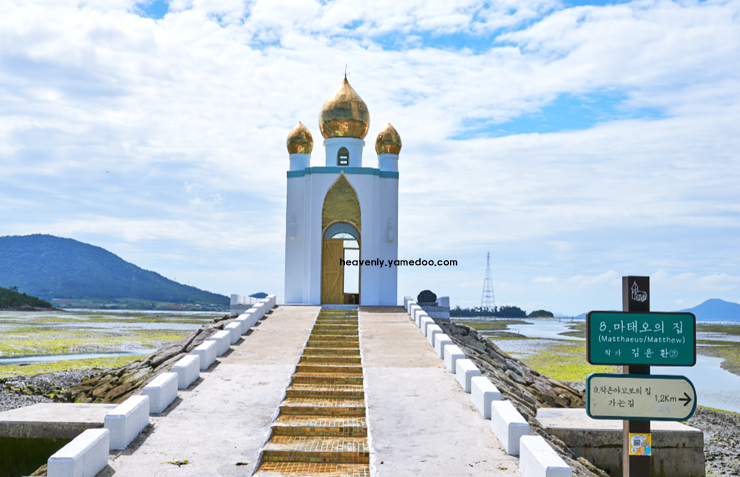 바닷바람을 맞으며 섬과 섬을 잇는 다리를 건너면 자연과 하나 되는 기분이 듭니다. 곳곳에 순례자의 상징이 되는 조형물과 안내판이 설치되어 있어 길을 따라가며 의미를 되새길 수 있습니다.