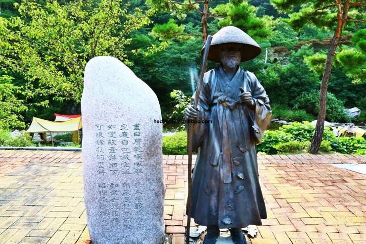 건물 밖으로 나가면 김삿갓을 기리는 동상과 함께 자연 속에 조성된 산책로가 이어집니다. 주변의 산세가 아름다워 가벼운 산책을 하며 시 한 구절 떠올려보는 것도 좋습니다.