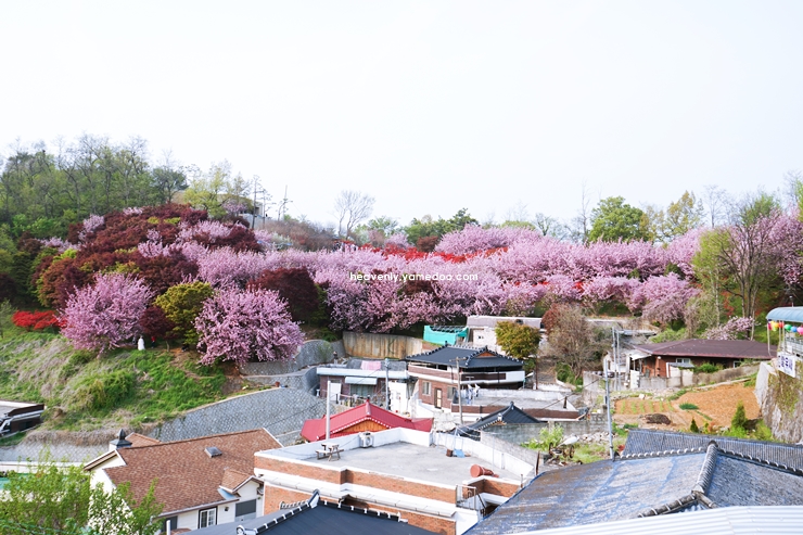 매화꽃이 만발한 길을 따라 걷다 보면, 봄의 싱그러움이 온몸을 감싸는 듯합니다. 이 마을은 조용하고 평화로운 분위기가 특징이며, 매화와 함께 다양한 봄꽃들도 조화롭게 어우러져 있습니다.