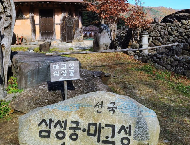 삼성궁에 들어서면 마치 다른 세계로 걸어 들어온 듯한 기분이 듭니다. 자연 속에 자리 잡은 돌담과 조각들이 신비로운 분위기를 자아내고 있지요. 오랜 세월을 간직한 듯한 이곳은 하나하나의 돌이 이야기를 품고 있는 것처럼 느껴집니다.