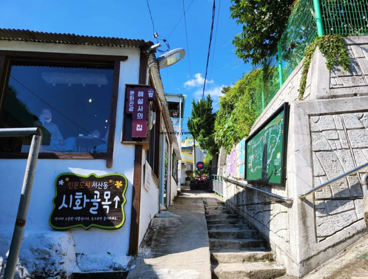 시 사이사이에는 벽화와 작은 소품들이 어우러져 있어 걷는 내내 시선을 머물게 했습니다. 어떤 시는 웃음을 자아냈고, 어떤 시는 잠시 발걸음을 멈추게 만들었습니다. 골목 중간에는 작은 포토존도 있었고, 벽에 기대어 사진을 남기는 분들도 보였습니다. 주변은 조용했고, 바람은 골목 안을 천천히 돌고 있었습니다.