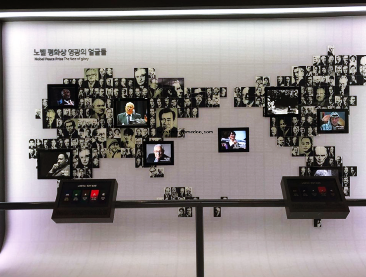 노벨평화상 수상과 관련된 자료는 따로 마련된 공간에서 집중적으로 소개되고 있었습니다. 실제 수상 당시의 영상과 연설문이 함께 전시되어 있어 그 순간의 무게감을 느낄 수 있었습니다. 전시물 하나하나에는 설명이 잘 정리되어 있어 이해하기 쉬웠고, 관람객들은 대부분 조용히 걸음을 옮기며 내용을 읽고 계셨습니다.