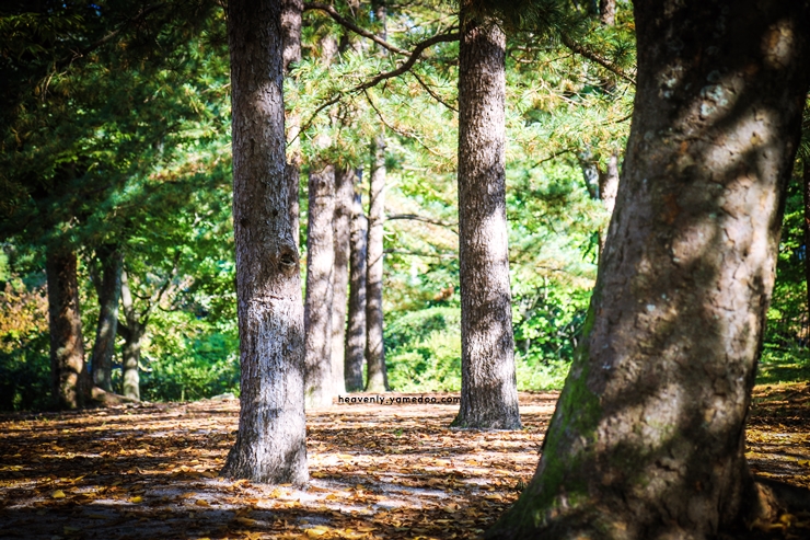 곧게 뻗은 나무들이 하늘을 향해 줄지어 서 있는 모습이 인상적인 경주 가볼만한곳 베스트 10입니다. 숲 사이로 햇살이 스며들며 그림자와 빛이 자연스럽게 어우러졌습니다.