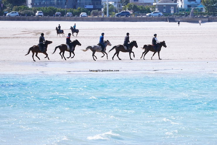 해변이 워낙 넓어서 말들이 뛰어놀고 있었습니다.