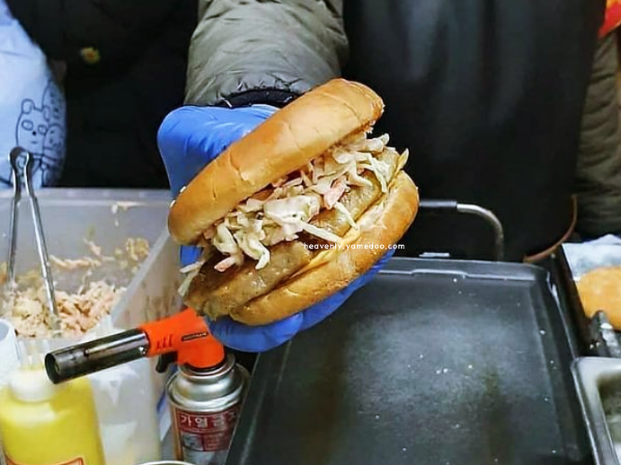 사람들 손마다 들려 있는 먹거리들이 모두 다르고, 그만큼 선택의 즐거움이 컸습니다. 떡갈비버거, 치즈 가득한 김치전, 따끈한 어묵까지 하나하나 눈과 입을 사로잡았습니다.