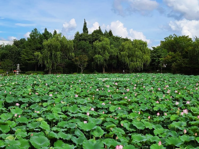 연꽃이 피는 계절에는 연못이 분홍빛으로 물들어 한 폭의 그림 같았습니다. 바람이 불 때마다 물결이 살짝 일렁이고, 그 위로 하늘이 비쳤습니다. 정자에 앉아 바라보는 풍경은 그 자체로 깊은 쉼이 되었습니다.