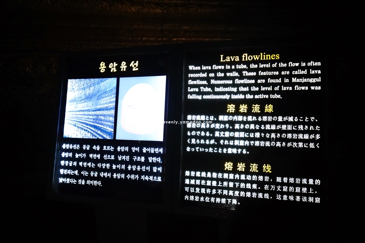 천장과 벽면을 따라 흐른 용암의 자국은 마치 거대한 붓질처럼 보였습니다. 바닥은 촉촉했고, 천장에서는 물방울이 똑똑 떨어져 긴 시간의 흐름을 느끼게 했습니다.
