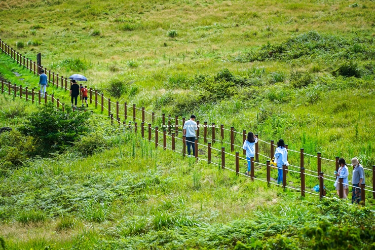 백약이오름을 오르기 시작하자 푸른 들판과 억새밭이 바람을 타고 일렁이며 길을 안내해준 제주 가볼만한곳 베스트10 여행지입니다. 나무 계단을 따라 한 걸음씩 오를 때마다 탁 트인 풍경이 점점 넓어졌습니다.
