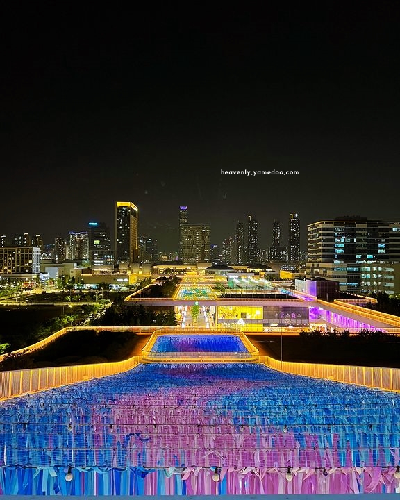 아이들을 위한 체험 공간과 놀이터도 마련되어 있어 가족 단위 방문객도 많았습니다. 저녁이 되면 조명이 은은하게 켜지며 낮과는 또 다른 분위기를 연출했습니다. 지하에는 영화관과 맛집이 몰려 있어 실내로 들어가도 충분히 즐길 거리가 많았습니다.