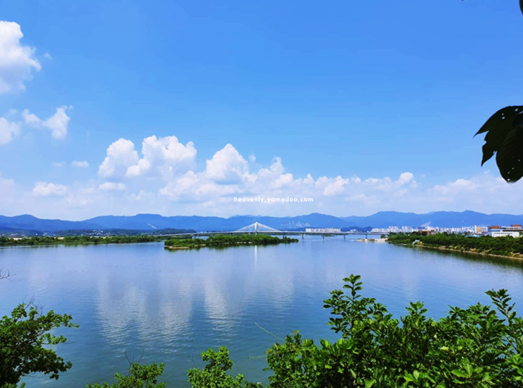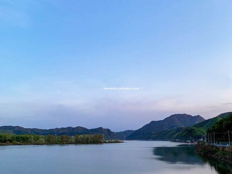 강 위로 길게 뻗은 투명한 길은 마치 허공을 걷는 듯한 기분이 들게 했습니다. 주변 풍경은 넓고 시원하게 펼쳐져 어디를 봐도 그림처럼 아름다웠습니다.