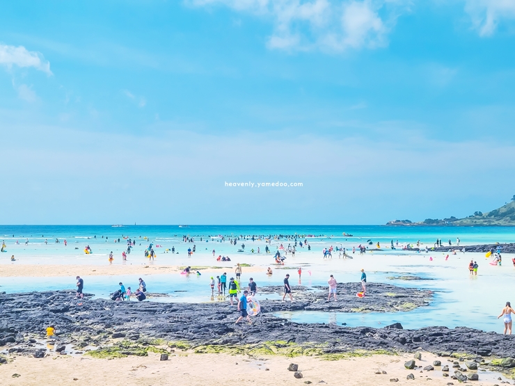 곽지 해수욕장에 도착하자마자 눈앞에 펼쳐진 바다는 마치 수정처럼 맑고 투명했습니다. 발을 담그면 바닥이 훤히 보일 만큼 깨끗해서 첫발부터 감탄이 절로 나왔던 8월 제주도 여행코스 2박3일 여행지 이었습니다.