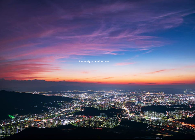 식장산 전망대에 오르기 전, 어둠이 내려앉은 숲길을 따라 천천히 걷는 동안 바람 소리마저 조용히 들렸던 대전 가볼만한곳 베스트10 이었습니다. 고요한 밤공기를 가르며 올라선 전망대에 다다르자 수많은 불빛들이 반짝이며 대전 시내를 수놓고 있었습니다. 도심의 빛이 별처럼 반짝이는 그 풍경은 말없이 마음을 채우기에 충분했습니다.