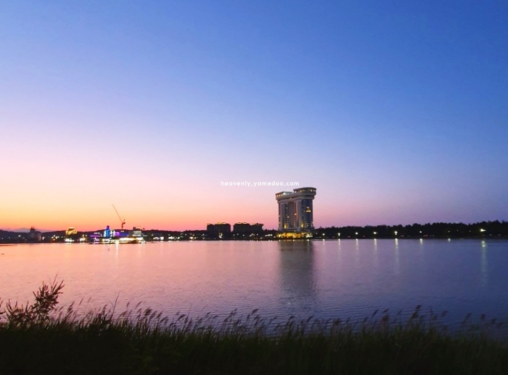 어느 덧 하늘이 분홍빛으로 물들면 호수 물빛도 함께 물들어 마치 한 폭의 그림 같았죠. 사람들의 낮은 대화소리가 멀리서 들려왔는데, 그마저도 호수의 고요함을 깨뜨리지 않더군요.