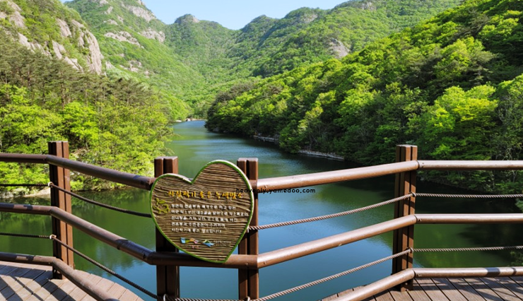 계곡 물은 맑게 흐르며 바위 모서리를 둥글게 깎아, 손끝에 닿는 냉기가 기분 좋은 기척을 남겼어요. 참나무 그늘 아래 잠시 앉아 있으니 새소리가 겹겹이 쌓여 숲의 낮을 만들어주었습니다. 전망터에 서면 숲의 결이 파도처럼 이어져 멀리까지 퍼지고, 마음속 창문이 넓게 열렸어요.