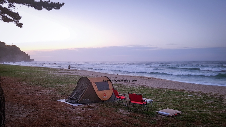 캠핑을 즐기는 사람들 틈에서 바다를 바라보며 조용히 앉아 있는 이들의 모습이 오히려 더 강렬한 풍경으로 남았습니다. 근처에 등명낙가사도 함께 있어, 산과 바다를 함께 느낄 수 있는 동선이 매력적이었고요.