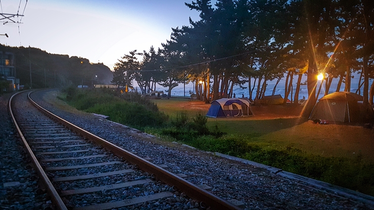 정동진 해수욕장에 도착하자 기찻길과 바다가 나란히 이어지는 낯설고도 반가운 풍경이 먼저 눈에 들어왔습니다. 바다와 가장 가까운 역이라는 말처럼, 기차가 지나가는 소리와 파도 소리가 묘하게 어우러져 특별한 감성을 자아냈어요.