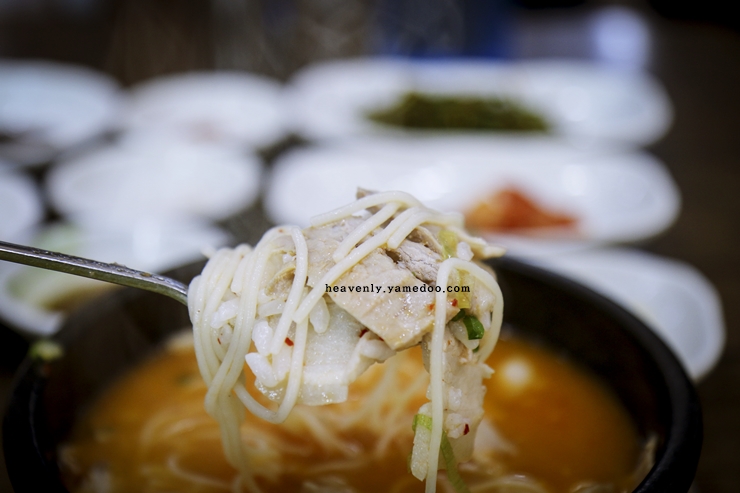 돼지 부속물 건더기가 정말 많습니다. 특히 돼지국밥의 국물은 여행의 지친 피로를 한방에 풀어줄정도로 시원한 맛이 냈습니다.