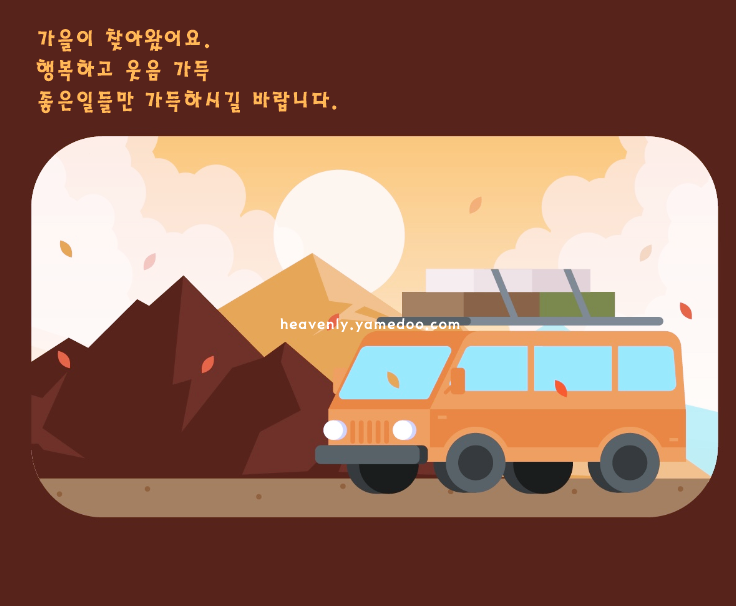 26. 사계절 중 가장 아리따운 가을입니다. 형형색색 단풍잎처럼 아름답고 건강하고 풍요로운 10월 보내시길 기원합니다.