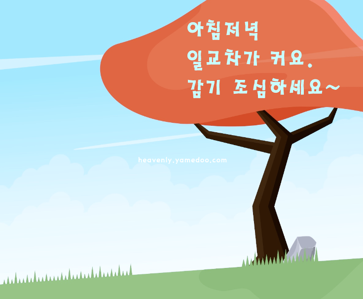 10. 아침저녁으로 일교차가 큽니다. 환절기 건겅 조심하시길 바랍니다.
