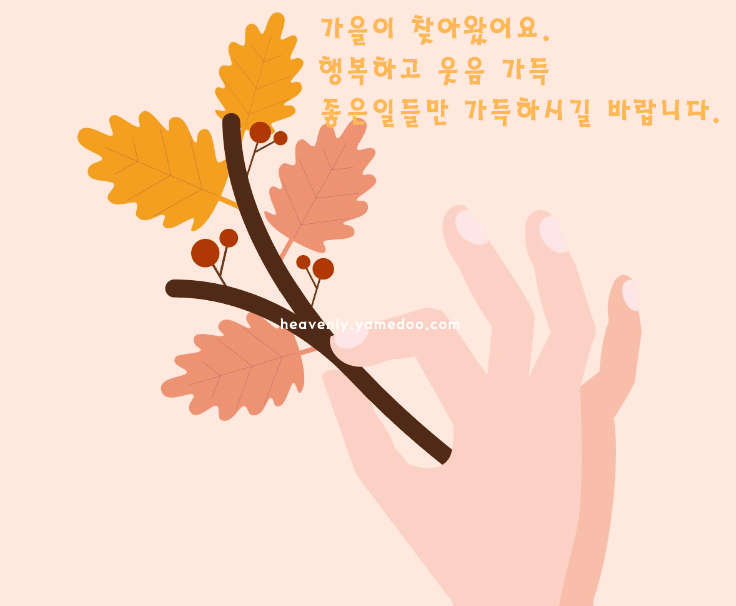 32. 이번 가을에는 행복가득한 일들만 가득하길 빌어봅니다. 당신에게 모든 행운이 깃들기 소망하며 행복한 한 달 보내시길 기원합니다.