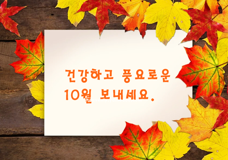 바야흐로 오색찬란한 단풍잎을 감상할 수 있는 10월입니다. 벌써 설악산은 단풍구경을 할 수 있다고 합니다. 시간 참 빠르게 흘러가고 있습니다. 주변 지인들에게 여유롭고 풍족하고 안전한 한 달 보내시라는 의미에서 따뜻한 인사말을 전하는 것도 좋습니다. 그래서 10월 인사말 이미지 문구 모음을 준비했습니다.