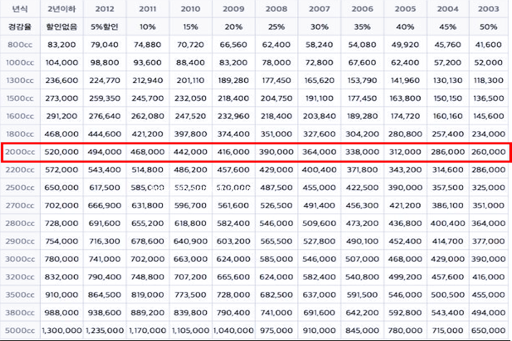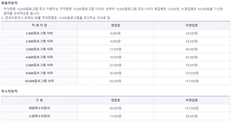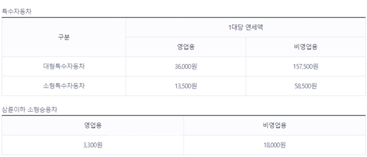 특수자동차 및 삼륜이하 소형승용차는 기준 금액이 다르기때문에 이에 해당하는 분들은 참고 하시길 바랍니다.