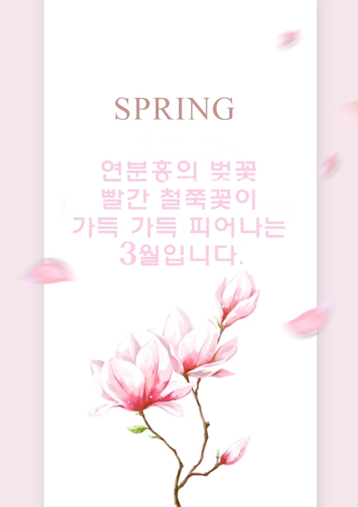 1. 새로운 봄의 시작을 알리는 3월이 밝아졌습니다. 겨우 내 움츠림을 마음을 다하고 새로운 시작을 준비하는 시간이 시작되면. 이번 달 여러분의 일상에 작은 기쁨과 행복이 가득하길 바라며, 모든 순간이 ○○님에게 의미 있는 시간으로 기억을 새롭게 하고자 합니다.