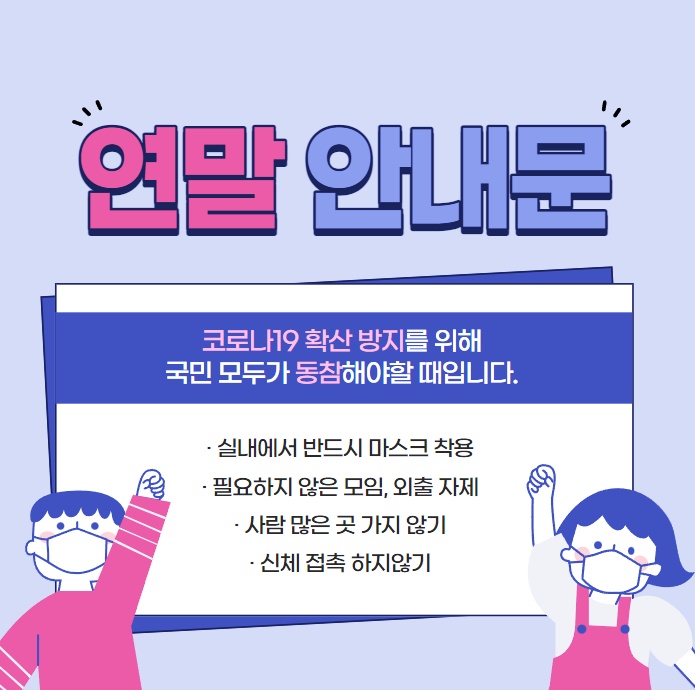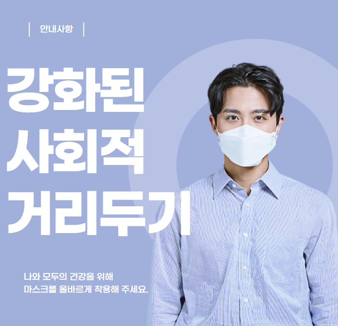 강화된 방역 조치는 다가오는 12월 18일 0시부터 다음년도 1월 2일까지 약 16일간 실시될 예정입니다. 정부는 연말에 더욱더 강화된 방역을 철저히 한다고 하니 우리들도 정부방침에 따라 최선을 다해서 도와야 하겠습니다.